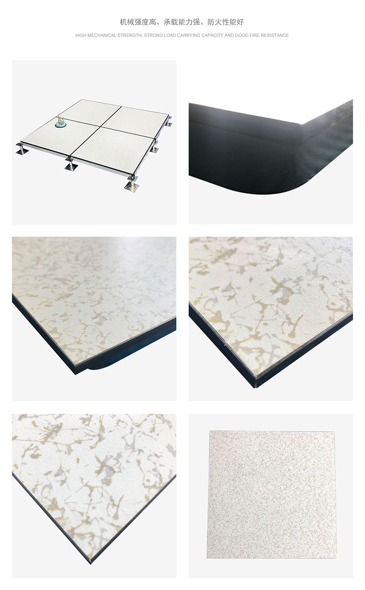 全鋼防靜電地板為全鋼組件,分有邊、無邊、微邊(三種邊處理方式)。底面采用SPCC深沖冷軋板拉伸成型鋼板厚度(0.4~1.5mm),球窩狀結(jié)構(gòu),增加地板的機械荷載強度。面板采用硬質(zhì)SPCC鋼板(0.5~2.0mm),上下經(jīng)過點焊焊接成型,切邊沖孔后,經(jīng)防銹處理,環(huán)氧樹脂粉末靜電噴涂后,中間填充發(fā)泡水泥(可以根據(jù)客戶需求發(fā)泡不同重量),再經(jīng)過日曬養(yǎng)護后形成穩(wěn)定的承載結(jié)構(gòu)。地板上表層粘貼防火板(HPL)/復(fù)合PVC/ 通體PVC/陶瓷地磚等不同材質(zhì)的裝飾表層,達到產(chǎn)品花色的多樣性、可以根據(jù)客戶需求個性化定制產(chǎn)品。搭配聯(lián)網(wǎng)支架、支架、螺釘組裝后,定位聯(lián)接更加準(zhǔn)確、精度可靠。
